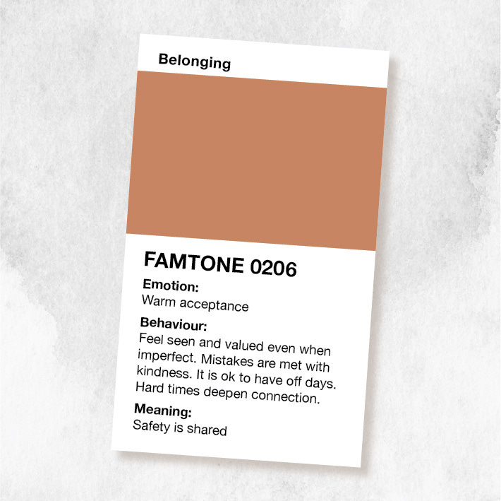 This Famtone swatch is designed specifically to help us make the invisible emotional safety more visible, so that, if needed, we can move toward small, supportive shifts over time.