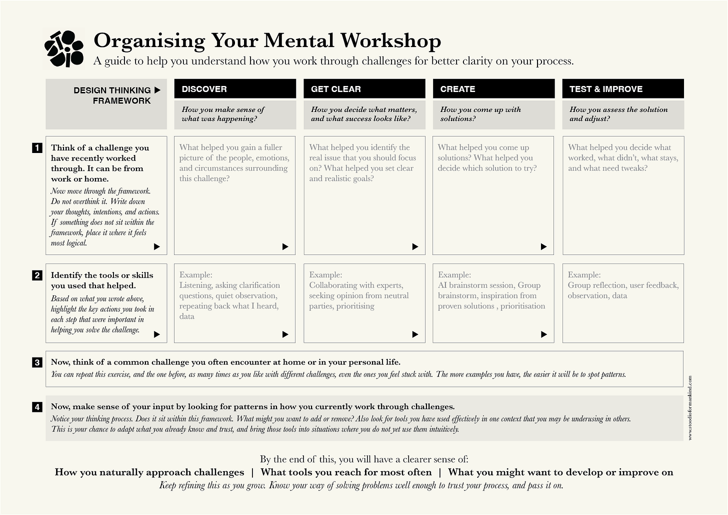 Whenever we face a challenge, we step into our mental workshop.